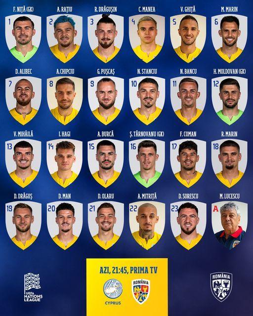 Selecţionerul Mircea Lucescu a anunţat cei 23 de jucători care vor face parte din lotul României la meciul cu Cipru, din Liga Naţiunilor. Ca de obicei, Nicolae Stanciu va purta numărul 10, Ianis Hagi va evolua cu 14, iar Denis Alibec cu 7.
