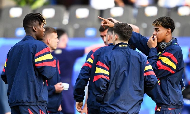 UPDATE, 21.15: Fotbaliştii celor două formaţii au inspectat suprafaţa de joc cu două ore înainte de startul partidei. La inspectarea gazonului, englezii au părut mai tensionaţi, în timp ce spaniolii au părut mai relaxaţi, în special graţie puştilor-minune din ofensivă, Nico Williams şi Lamine Yamal.