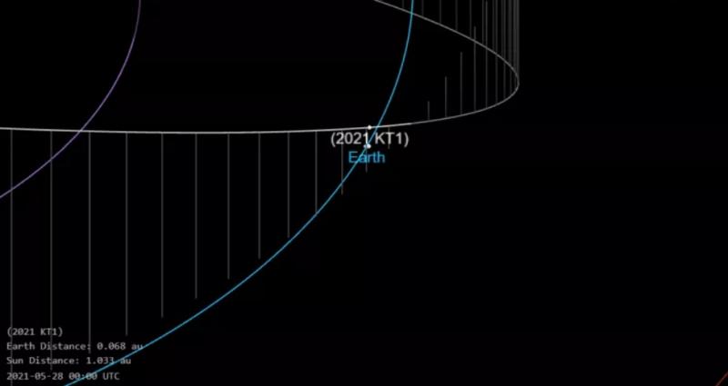 O diagramă NASA arată orbita KT1 2021 din 28 mai