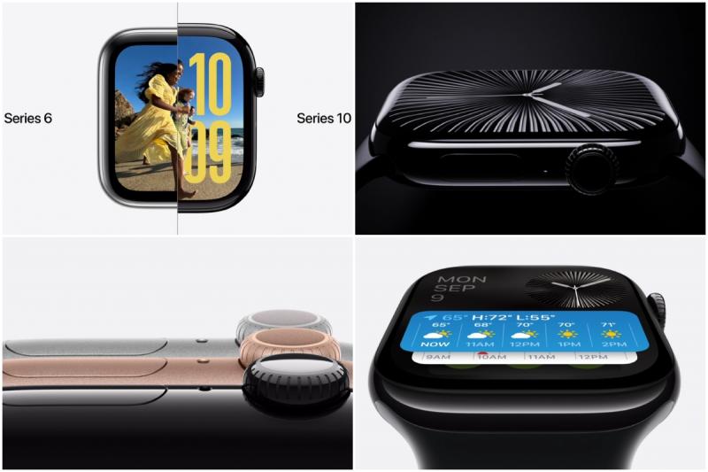 Noul Apple Watch Series 10 are un ecran care este cu 40% mai luminos atunci când este privit dintr-un anumit unghi, cu un nou ecran OLED cu unghi larg, primul de la Apple. Există o nouă culoare pentru Apple Watch Series 10, un negru care are un cadru din aluminiu. Noul ceas va veni, de asemenea, în aur roz și argintiu. Are doar 9,7 mm grosime, cu aproape 10% mai subțire decât Apple Watch Series 9. Apple Watch Series 10 menține o rezistență la apă de 50M, astfel încât să puteți face duș sau să vă scufundați cu ceasul. Se poate încărca mai repede, până la 50% încărcat în doar 8 minute.