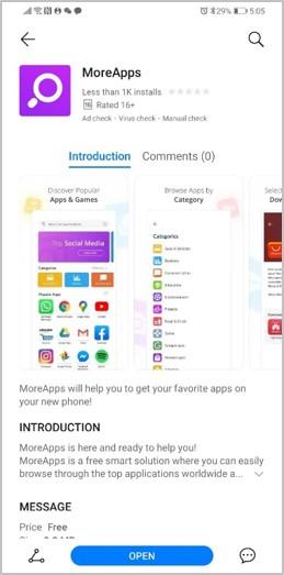MoreApps este o soluţie gratuită din AppGallery care ajută utilizatorii să navigheze cu uşurinţă printr-o gamă variată de aplicaţii internaţionale şi locale, pentru a le putea instala pe dispozitiv. Apreciată la nivelul întregii comunităţi, MoreApps ajută la descărcarea aplicaţiilor Social Media de top şi instalarea lor în doar câteva minute.