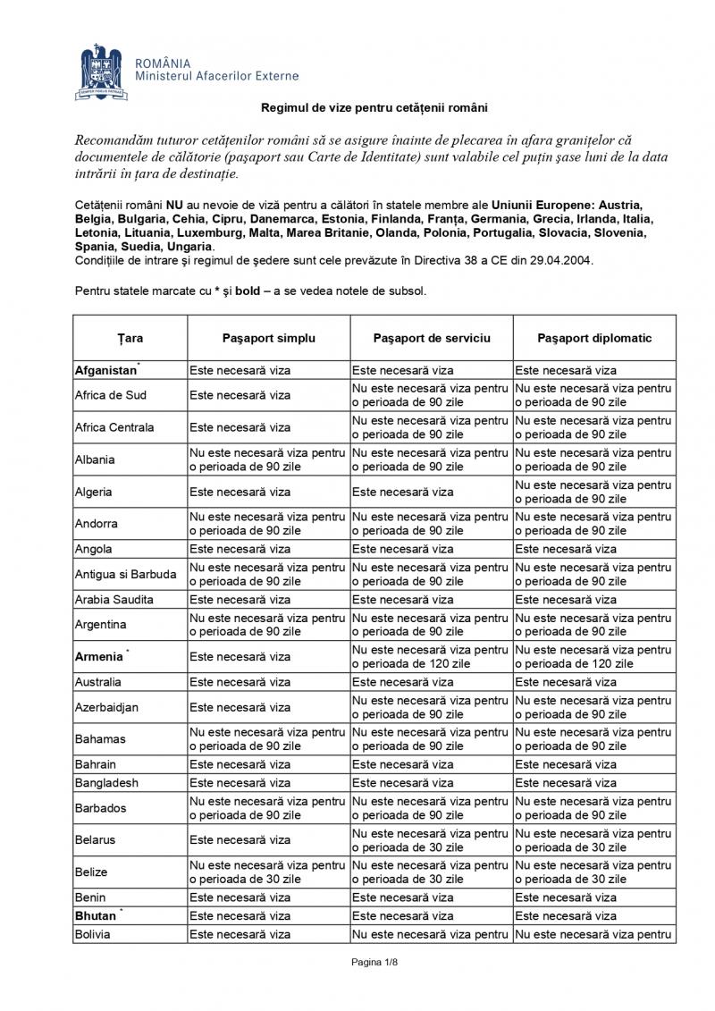 132 de țări, atât pot vizita turiștii români fără a avea nevoie de viză de călătorie. Din acest punct de vedere trebuie precizat că românii pot să ajungă, fără viză, în ţări precum Brazilia, Republica Dominicană, Malaezia, Mauritius, Noua Zeelandă, Santa Lucia, Seychelles, Tanzania, Trinidad Tobago, Turcia, Maroc, Tunisia sau Vanuatu.