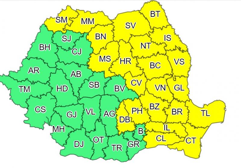 Astfel, în intervalul 20 iulie, ora 12:00 – 20 iulie, ora 22:00, în Maramureș, Moldova, Dobrogea, în estul Transilvaniei și în nordul și estul Munteniei vor fi perioade cu instabilitate atmosferică, ce se va manifesta prin intensificări ale vântului (rafale în general de 55...70 km/h), vijelii, grindină, frecvente descărcări electrice și averse torențiale (în intervale foarte scurte de timp cantitățile de apă vor fi de 20...25 l/mp și izolat peste 30...40 l/mp), potrivit ANM.