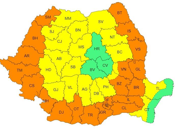 ANM a emis o avertizare cod portocaliu pentru luni. Valul de căldură va persista pentru a paisprezecea zi consecutiv. În județele Satu Mare, Bihor, Arad, Timiș, Caraș-Severin, Mehedinți, Dolj, Olt, Teleorman, Giurgiu, Călărași, Ialomița, Brăila, Buzău, Ilfov și municipiul București, Galați, Vrancea, Vaslui, Iași și Botoșani va fi caniculă.