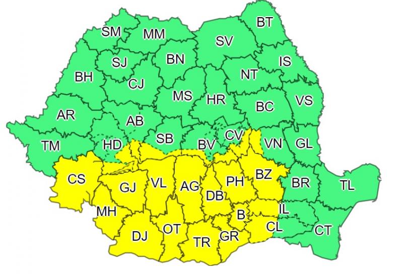 De asemenea, sudul Banatului, Oltenia, cea mai mare parte a Munteniei, precum şi Munţii Banatului şi zona Carpaţilor Meridionali sunt sub cod galben de ninsori, până luni la ora 14:00.
