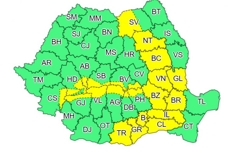 Harta județelor afectate de codul galben