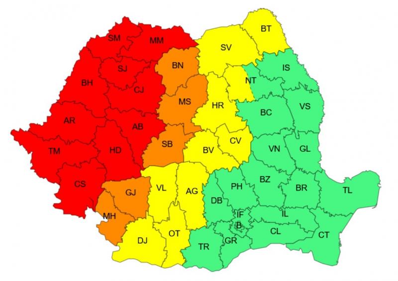 Potrivit ANM, un cod roșu de vijelii puternice intră în vigoare marți, 8 iulie, de la ora 15 și va fi valabil până la ora 21. Județele afectate sunt Caraș-Severin, Timiș, Arad, Bihor, Satu Mare, Sălaj, Maramureș, Cluj, Alba și Hunedoara