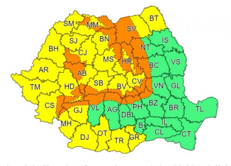 Cod portocaliu: Interval de valabilitate: 30 ianuarie, ora 10 – 31 ianuarie, ora 08