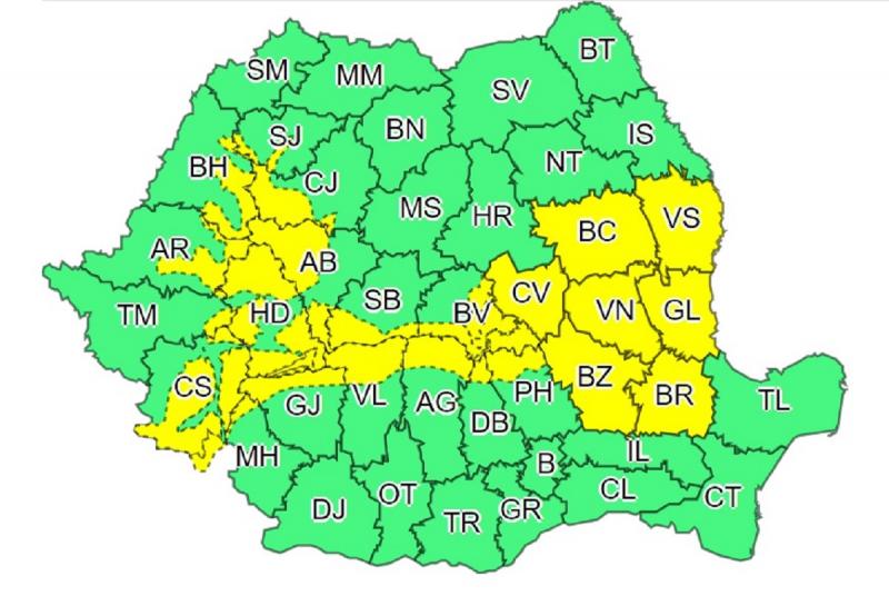 O avertizare cod galben privește intervalul 31 ianuarie, ora 20:00 – 1 februarie, ora 10:00, pentru ninsori însemnate cantitativ și intensificări ale vântului, la altitudini de peste 1400 m, în Carpații Meridionali și Carpații Occidentali.