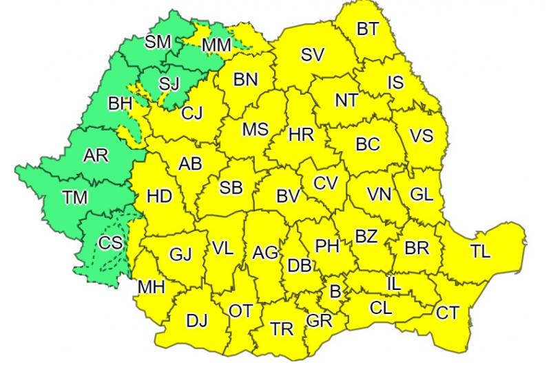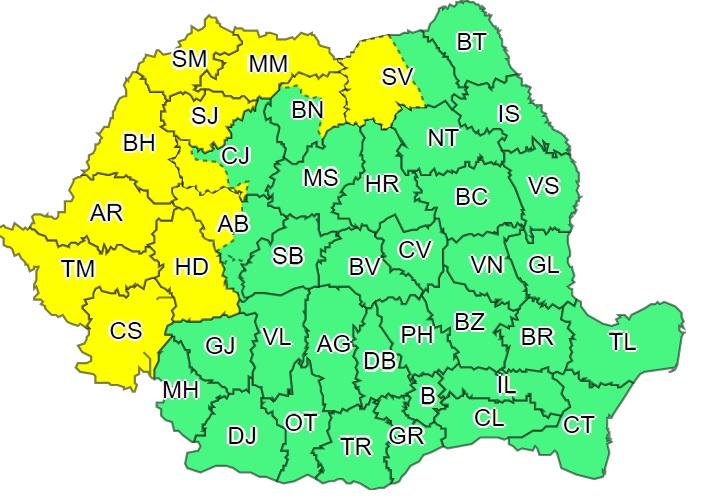 Meteorologii au emis o avertizare cod galben de ploi și ninsori valabilă de duminică până luni în partea de vest a țării, iar de luni până miercuri în aproape întreaga țară.