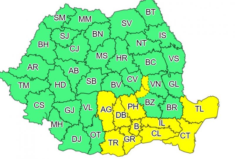 Sunt vizate județele: Argeș, Dâmbovița, Teleorman, București, Giurgiu, Vrancea, Buzău, Ialomița, Călărași, Prahova, Constanța, Tulcea.