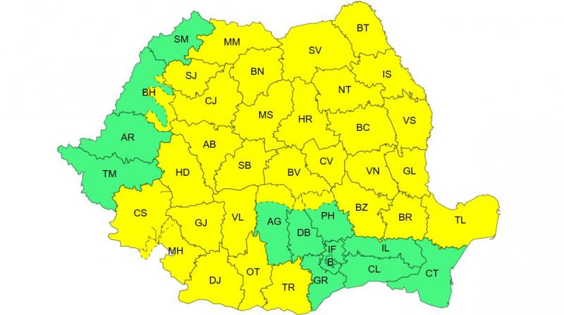 Prima avertizare Cod galben intră în vigoare luni, de la ora 12:00, și va fi valabilă până la ora 21:00.