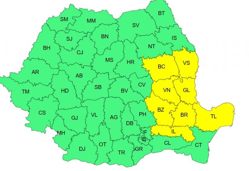 Administraţia Naţională de Meteorologie a emis mai multe atenţionări cod galben de vreme severă. Unul dintre ele a intrat în vigoare la ora 10.00 şi viează Capitala şi alte zece judeţe. Sunt anunţate intensificări ale vântului în cea mai mare parte a Olteniei și Munteniei. De altfel, vântul puternic va afecta mare parte din sudul și estul României în următoarele două zile, potrivit meteorologilor.