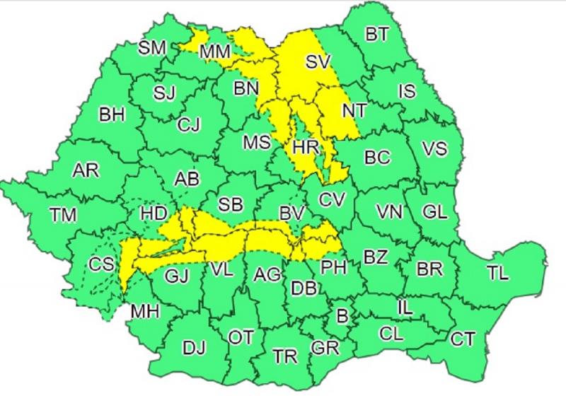 Potrivit ANM, este vizată zona de munte a județelor: Alba, Argeș, Bistrița-Năsăud, Brașov, Caraș-Severin, Dâmbovița, Gorj, Hunedoara, Harghita, Mehedinți, Maramureș, Mureș, Neamț, Prahova, Sibiu, Suceva și Vâlcea.