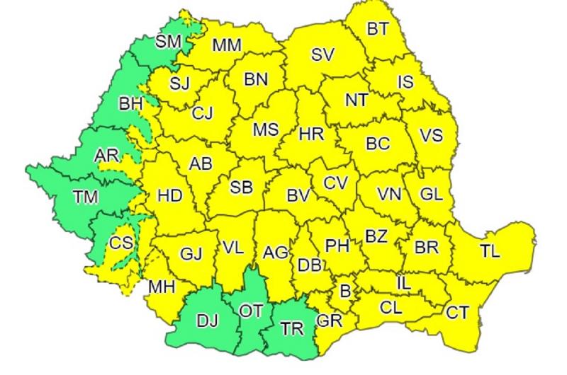 De mâine dimineață, odată cu expirarea codului portocaliu, intră în vigoare un cod galben de vreme severă.