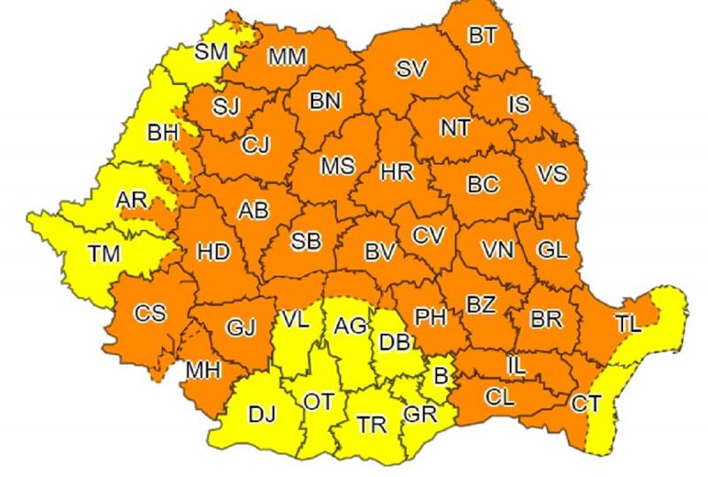 - ANM a emis, marți dimineață, noi alerte de vreme severă pentru cea mai mare parte a țării.