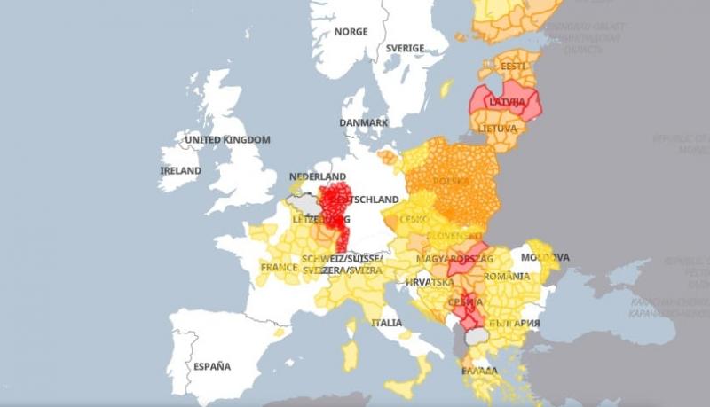 O alertă de cod roșu pentru furtuni violente este în vigoare şi în Polonia. Ungaria, Serbia, Letonia se află sub avertizări cod roşu de caniculă.