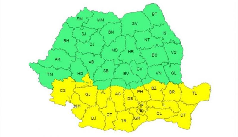 Potrivit ANM, avertizarea de cod galben intră în vigoare de sâmbătă 30 noiembrie, ora 10 şi va fi valabilă până la 1 decembrie, ora 20. Fenomene vizate și zone afectate: intensificări ale vântului în sudul țării, viscol în vestul Carpaților Meridionali și Munții Banatului.