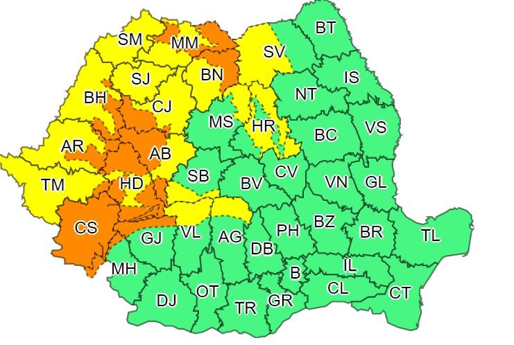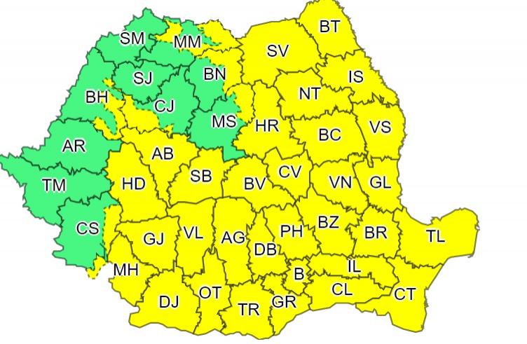 Meteorologii au emis mai multe avertizări cod galben și portocaliu de vreme severă. Meteorologii anunță vijelii, plo torenţiale, descărcări electrice și grindină şi vijelii.