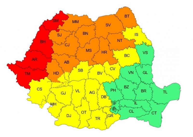Timiș, Arad, Bihor și Satu Mare sunt judeţele afectate de codul roşu, care intră în vigoare de luni, 7 iulie, ora 15 până la ora 20. Fenomene vizate sunt vijelii puternice.