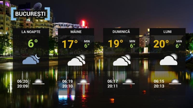 În noaptea de vineri spre sâmbătă, cerul va fi variabil, iar în nord și sud-est va ploua izolat. În Carpații Orientali precipitațiile vor avea caracter mixt. Vântul va sufla slab, iar temperaturile vor fi cuprinse între -5 și 8 grade. Și în București va fi noros, iar minima va fi de 4-6 grade.
