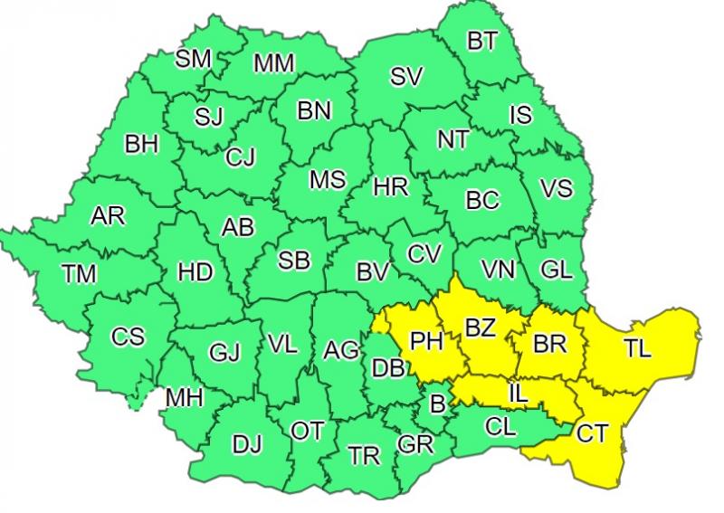 În intervalul menționat, local în Dobrogea, nordul și în estul Munteniei vor fi perioade cu instabilitate atmosferică, ce se va manifesta prin intensificări ale vântului (rafale de 55...75 km/h), vijelii, descărcări electrice, averse torențiale și grindină. În intervale scurte de timp, cantitățile de apă vor fi de 20...25 l/mp și izolat de peste 30 l/mp. Potrivit ANM, manifestări de instabilitate amosferică vor fi izolat și în restul Munteniei, al Moldovei și în sud-estul Transilvaniei.