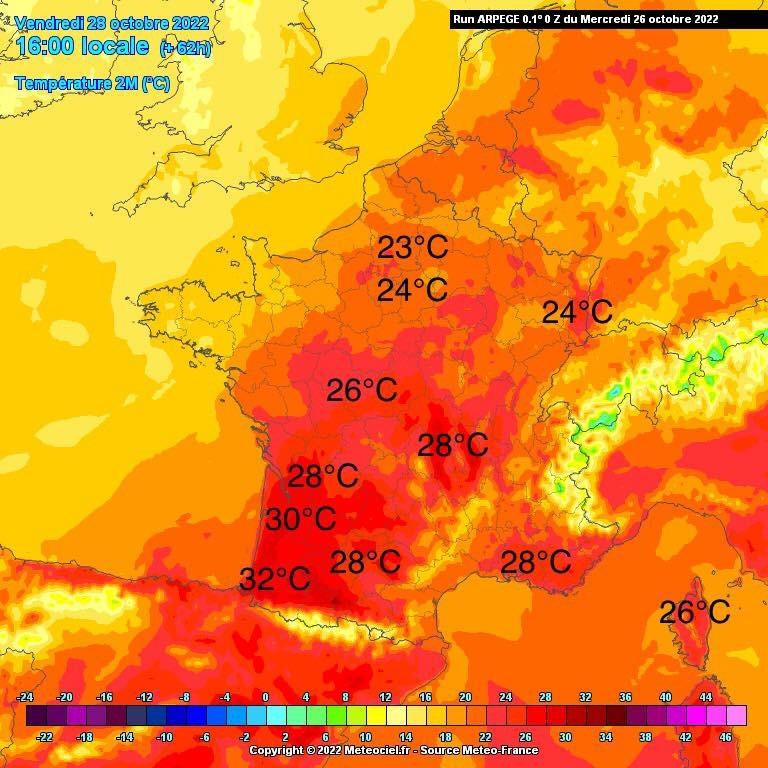 Cel mai posibil, meteorologii din Franța se așteaptă ca această lună să devină cea mai călduroasă lună octombrie din ultimii 100 de ani. Țara s-a confruntat cu mai multe perioade de cădură în această lună, în 18 octombrie temperaturile au atins 33,8 grade în Orthez și Navarrenx.