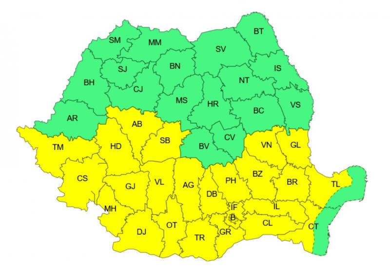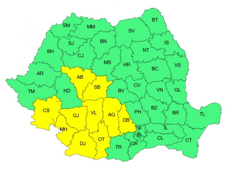Potrivit meteorologilor, astăzi, între orele 12:00 - 21:00, în sudul Banatului, Oltenia, nord-vestul Munteniei și sud-vestul Transilvaniei, se vor înregistra temperaturi deosebit de ridicate pentru această dată (maxime de 34...36 de grade) și local va fi caniculă.