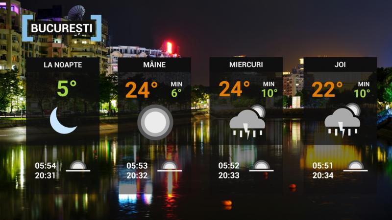 În noaptea de luni spre marţi, vremea va fi răcoroasă. Cerul va fi mai mult senin, iar vântul va sufla în general slab. Temperatura minimă va fi de 5...8 grade.