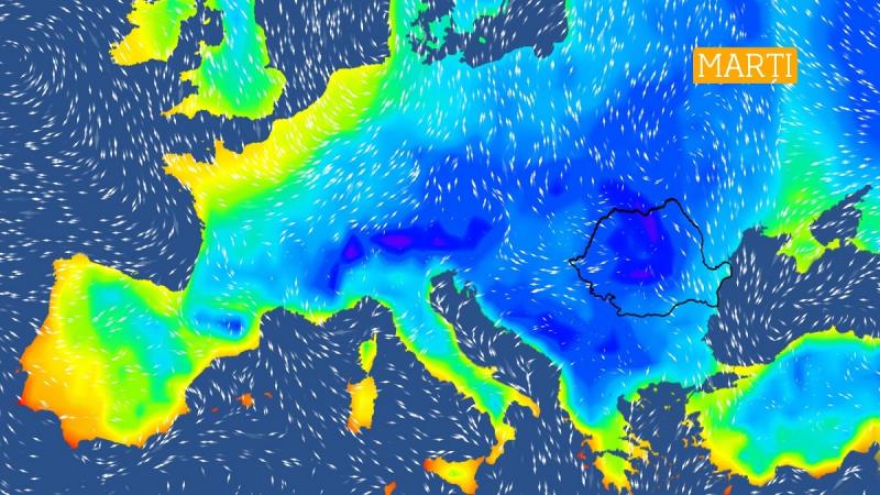 Temperaturile maxime se vor încadra în general între 6 şi 12 grade Celsius, iar cele minime, preponderent pozitive vor fi cuprinse între 0 grade Celsius în depresiunile din estul Transilvaniei şi pânã spre 10 grade pe litoral.