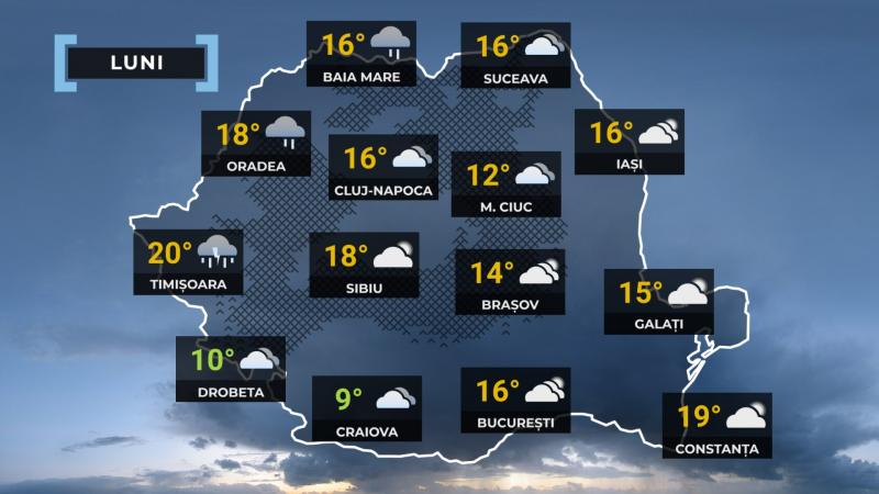 Vântul va sufla slab și moderat, cu intensificări în zona montană înaltă a Carpaților Orientali și a Munților Apuseni, unde rafalele vor atinge 70…90 km/h. Trecător, vor fi intensificări și în Crișana, cu viteze de până la 40…45 km/h. Temperaturile maxime vor porni de la 6…8 grade în zonele cu ceață persistentă, în special în sudul Olteniei, Munteniei și depresiunile din estul Transilvaniei, și vor urca până la 21 de grade în sudul Banatului. Minimele se vor încadra, în general, între 0 și 11 grade.