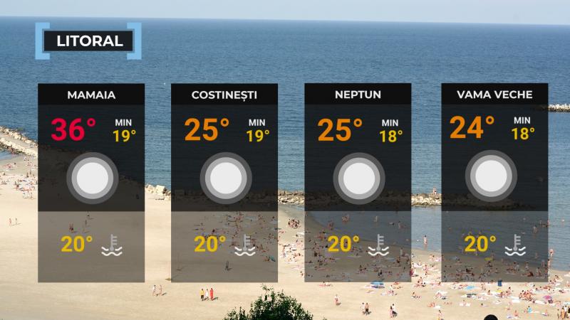 Vremea va fi predominant frumoasã, iar temperaturile vor creşte uşor faţã de intervalul precedent. Cerul va fi variabil, mai mult senin ziua. Vântul va sufla slab şi moderat cu intensificãri dupã-amiaza şi noaptea. Temperaturile maxime vor fi cuprinse între 24 şi 26 de grade, iar cele minime între 18 şi 20 de grade. Temperatura apei mãrii va avea valori de 20...22 de grade.