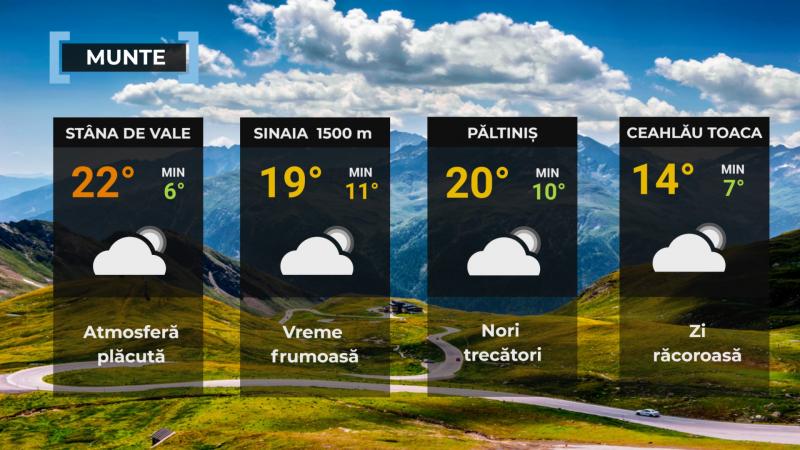 Vremea va fi frumoasã şi va intra într-un proces de încãlzire. Cerul va fi variabil, iar vântul va sufla slab şi moderat, cu uşoare intensificãri în special la altitudini mari.