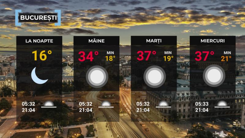 La noapte, cerul va fi senin, iar vântul va sufla slab pânã la moderat. Temperatura minimã va fi de 14...16 grade.