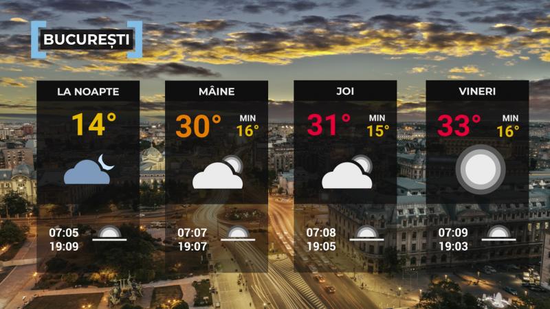 La noapte, cerul va fi variabil, iar vântul va sufla slab şi moderat. Temperatura minimã va fi de 11...14 grade.