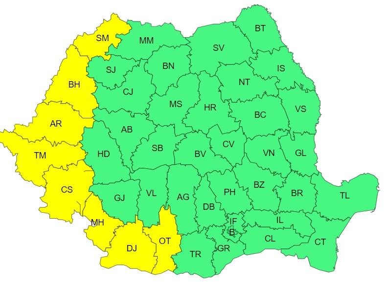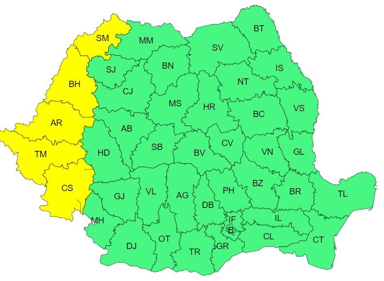 Pe parcursul zilei de vineri în Banat și Crișana, local va fi caniculă și disconfort termic ridicat, iar indicele temperatură-umezeală (ITU) va atinge pragul critic de 80 de unități. Temperaturile maxime vor fi de 33...35 de grade.