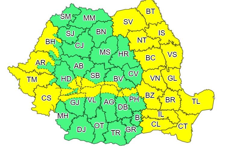 Până diseară, la ora 21.00, este în vigoare o avertizare cod galben de vânt puternic. Sunt vizate 27 de județe din Moldova, estul Munteniei, Dobrogea, Banat și Crișana. Potrivit meteorologilor, în zona înaltă de munte, rafelele pot depăși chiar și 100 km/oră.