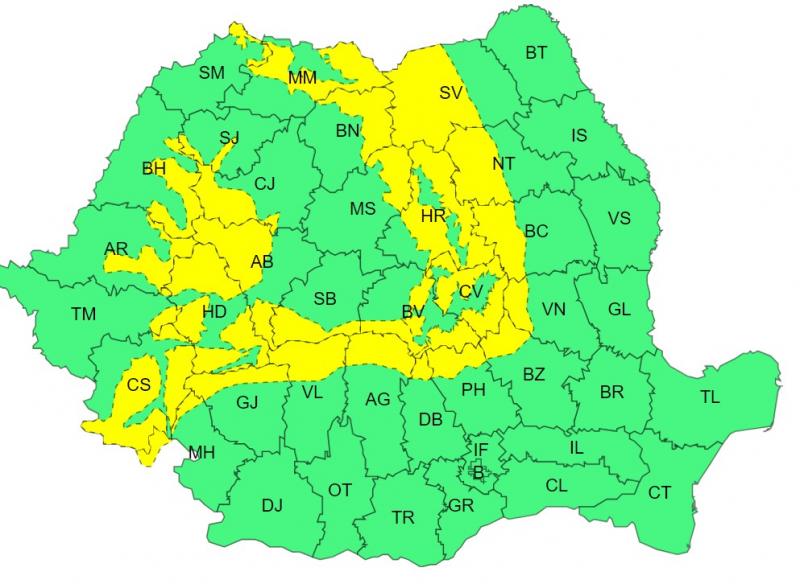 Sunt vizate zone din județele Satu Mare, Maramureș, Sălaj, Suceava, Bistrița-Năsăud, Neamț, Harghita, Mureș, Brașov, Covasna, Prahova, Dâmbovița, Argeș, Vâlcea, Mehedinți, Gorj, Sibiu, Alba, Cluj, Bihor, Arad, Timiș, Caraș Severin, Hunedoara, Bacău, Vrancea și Buzău.